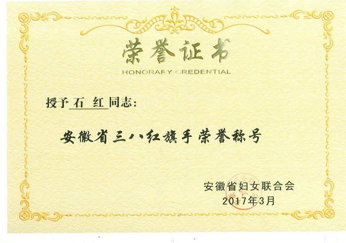 祝賀安糧實(shí)業(yè)董事長(zhǎng)石紅獲“安徽省三八紅旗手”殊榮