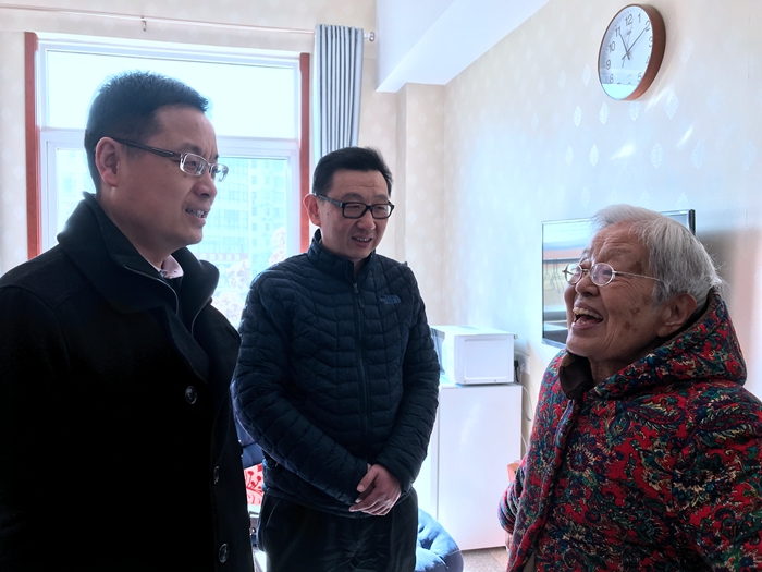 在2018年新春佳節(jié)即將到來之際, 集團公司領(lǐng)導(dǎo)孫毅、周洪帶領(lǐng)公司黨辦、工會、投資管理部、行政管理部、老干辦相關(guān)人員冒著嚴寒,頂風(fēng)踏雪,分赴合肥、巢湖、安慶等地,走訪慰問了集團及原巢湖冷凍廠、安慶冷凍廠的部分離退休老領(lǐng)導(dǎo)、老同志,給曾經(jīng)為安糧集團無私奉獻的老干部們送去了慰問品和新春佳節(jié)的問候與祝福。