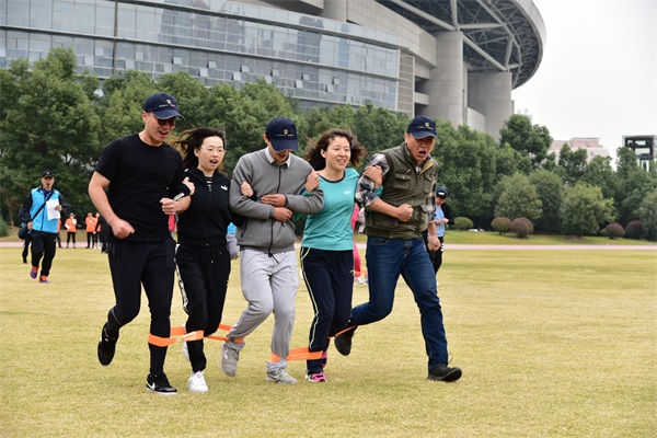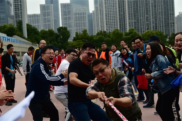 上午9點(diǎn)半,在簡(jiǎn)短的開幕式后,別開生面的競(jìng)賽項(xiàng)目陸續(xù)登場(chǎng),八支隊(duì)伍各顯風(fēng)采。五人六足項(xiàng)目首先登場(chǎng),步伐一致是該項(xiàng)目的制勝法寶,東倒西歪的令人捧腹,中途摔倒的令人嘆息,安糧地產(chǎn)代表隊(duì)最終勇拔頭籌;摸石過(guò)河考驗(yàn)手足協(xié)調(diào),安糧期貨熊青寶快速突圍,棋高一著;跳大繩的關(guān)鍵是快和穩(wěn),安糧國(guó)際一鼓作氣,幾乎零失誤,遙遙領(lǐng)先;踢毽子比賽靈巧之中顯真功夫,集團(tuán)本部方嘉亮身手不凡,技?jí)喝河?;自行車?jìng)慢,平靜中見驚奇,合肥建工黃玉獨(dú)樹一幟;托球接力跑,一考凌波微步,二比掌上功夫,安糧實(shí)業(yè)笑到最后;呼啦圈競(jìng)走難在“左右互博”,安糧小貸張媛媛最具神通;拔河項(xiàng)目是力量的較量,建工一隊(duì)勢(shì)如牛,盡展雄風(fēng);滾鐵環(huán)項(xiàng)目,作為童年的回憶,也漸漸成為回憶中的項(xiàng)目,安糧控股潘冬生副總裁帶大家領(lǐng)略了老前輩的少年風(fēng)采;50米折返跑接力作為本屆比賽的壓軸大戲,最為矚目,集團(tuán)聯(lián)隊(duì)一騎絕塵!十項(xiàng)比賽結(jié)束,“有趣”的一天也臨近尾聲,8支隊(duì)伍各領(lǐng)風(fēng)騷,獎(jiǎng)牌背后,團(tuán)結(jié)奮進(jìn)是制勝的終極秘訣。