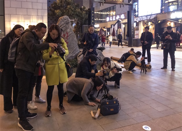 夜景拍攝非常講究技巧,會員們或蹲或趴的攝影姿勢也成了本次攝影課的一道風(fēng)景。拍攝過程中,大家不斷探討各自的作品,請教老師拍攝要點,力求拍攝一張好照片。晚間的春風(fēng)有些料峭,但會員們熱情洋溢,現(xiàn)場笑語不斷。