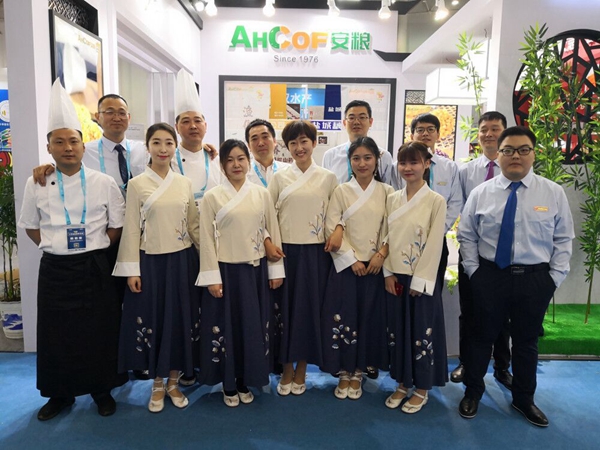 展會上,安糧實業(yè)的展臺延續(xù)去年頗受好評的徽派風(fēng)格,獨具一格的展位設(shè)計,身穿漢服的安糧姑娘“紅唇粉肌,青衣羅衫”穿梭在徽派建筑之間,讓人眼前一亮。
