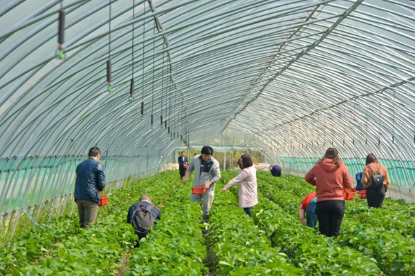 中午,在當(dāng)?shù)叵愦晦r(nóng)家樂(lè)飽嘗了一頓鄉(xiāng)間美味后,我們乘車(chē)前往舒城扶貧產(chǎn)業(yè)園——草莓示范園。成片的大棚映入眼簾,馥郁的草莓甜香撲面而來(lái),繽紛靚麗的身影在田間穿梭忙碌,一個(gè)個(gè)籃筐里漸漸壘起了小山,品嘗著草莓的甜蜜,滋潤(rùn)喉間,其樂(lè)無(wú)窮。下午三時(shí),我們乘坐大巴,踏上歸程。