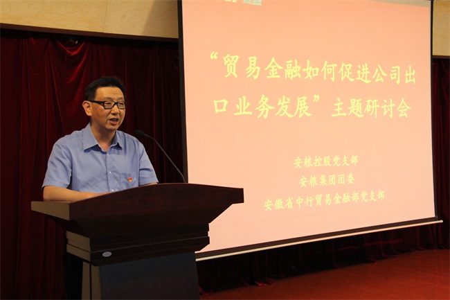 為強(qiáng)化企業(yè)黨建,加強(qiáng)黨團(tuán)建設(shè)結(jié)合,合力助推公司高質(zhì)量發(fā)展,在公司2019年經(jīng)營指導(dǎo)思想引領(lǐng)下,2019年5月28日下午,安糧控股黨支部與安糧集團(tuán)團(tuán)委聯(lián)合安徽省中行貿(mào)易金融部黨支部在盛安廣場五樓多功能廳開展了“貿(mào)易金融如何促進(jìn)公司出口業(yè)務(wù)發(fā)展”主題研討會。省中行貿(mào)易金融部黨支部書記、總經(jīng)理何浩,副總經(jīng)理王光建,安糧集團(tuán)黨委委員、副總裁、工會主席周洪,安糧控股黨支部書記、國際結(jié)算總監(jiān)武義海等出席會議,各相關(guān)支部黨員、貿(mào)易板塊團(tuán)員青年及相關(guān)業(yè)務(wù)人員共六十余人參加。