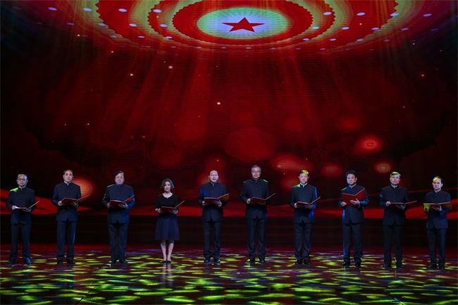 此外,本次演出國(guó)貿(mào)集團(tuán)黨委書記、董事長(zhǎng)范陽還率國(guó)貿(mào)領(lǐng)導(dǎo)班子與安糧集團(tuán)黨委書記、董事長(zhǎng)曹訓(xùn)立等各主要成員企業(yè)負(fù)責(zé)人,共同為大家奉獻(xiàn)了一首情真意切的配樂詩(shī)朗誦《國(guó)貿(mào)禮贊》。