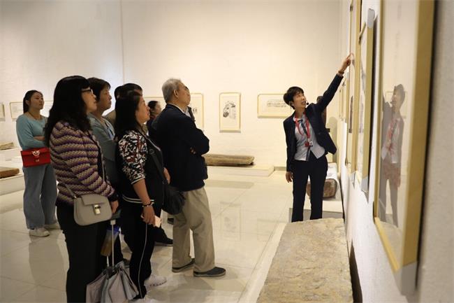 博物館內(nèi)青墻黛瓦、翹角飛檐,處處展示著徽州文化的獨(dú)特魅力。在講解員的帶領(lǐng)下,大家先后參觀了徽派石雕瑞獸展廳、古徽州木雕展廳、石刻人物造像展廳、百匾堂展廳等地方。一棟棟矗立于展區(qū)“無夢(mèng)園”中的清代老宅給了大家視覺上的直接震撼,館中的民俗用品更將大家?guī)Щ亓送舻臅r(shí)光。