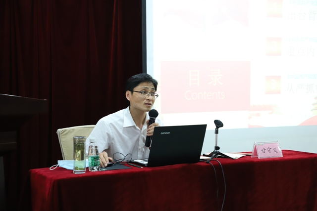 在兩個小時的課程中,甘教授充分聯(lián)系《條例》制定的背景、內(nèi)容和具體貫徹落實(shí)等三個方面對《條例》進(jìn)行了全面解讀,并深入詮釋了《條例》作為我們黨關(guān)于國有企業(yè)第一部重要黨內(nèi)法規(guī)的重要意義。