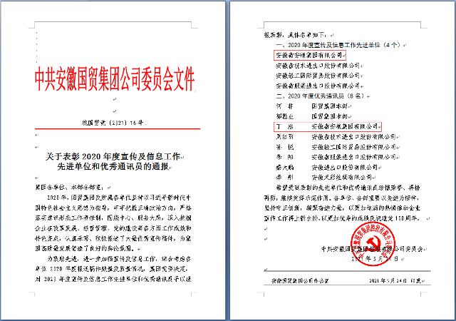 安糧集團榮獲國貿(mào)集團2020年度宣傳及信息工作表彰