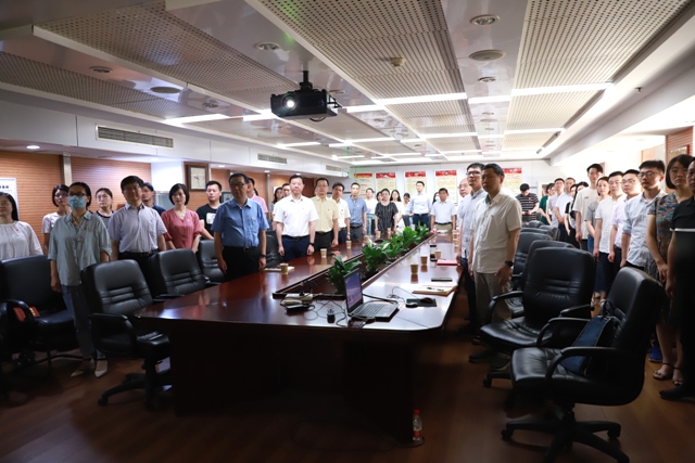 (曹訓(xùn)立帶領(lǐng)安糧集團(tuán)黨委班子、集團(tuán)直屬黨支部、安糧控股黨支部重溫入黨誓詞)