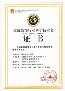 自2019年評(píng)選以來(lái),公司申報(bào)的“安徽(中國(guó))桐城文化博物館”項(xiàng)目斬獲科技創(chuàng)新工程獎(jiǎng)一項(xiàng),總結(jié)形成的施工技術(shù)成果“不規(guī)則立面齒條型GRC幕墻施工技術(shù)”獲得科技創(chuàng)新成果獎(jiǎng)一項(xiàng),走在安徽省內(nèi)裝飾行業(yè)的前沿。之后相繼獲得兩項(xiàng)科技創(chuàng)新工程獎(jiǎng):合肥市第六十八中學(xué)改擴(kuò)建項(xiàng)目-綜合樓工程,六安市兒童醫(yī)院、金安區(qū)婦幼保健院醫(yī)療病房綜合樓裝飾裝修工程;兩項(xiàng)科技創(chuàng)新成果獎(jiǎng):“一種可開啟180度的裝飾消火栓暗門”,“ 基于3D建模技術(shù)高支模結(jié)構(gòu)與裝飾結(jié)構(gòu)共用盤扣腳手架安裝技術(shù)”。其中“一種可開啟180度的裝飾消火栓暗門”科技創(chuàng)新成果更是獲得一等獎(jiǎng)的好成績(jī)。