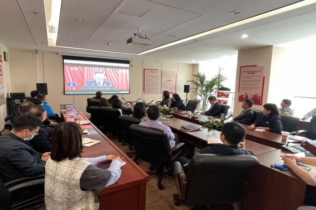 當(dāng)天上午,在安糧中心3208會(huì)議室內(nèi),安糧集團(tuán)黨委書記曹訓(xùn)立等黨委委員團(tuán)委委員,集團(tuán)、控股支部黨員,部門負(fù)責(zé)人以及子公司黨員領(lǐng)導(dǎo)干部、統(tǒng)戰(zhàn)人員代表集中收看了開(kāi)幕直播盛況,同志們聚精會(huì)神地聽(tīng)、專心致志地記,仿佛置身于大會(huì)現(xiàn)場(chǎng)。