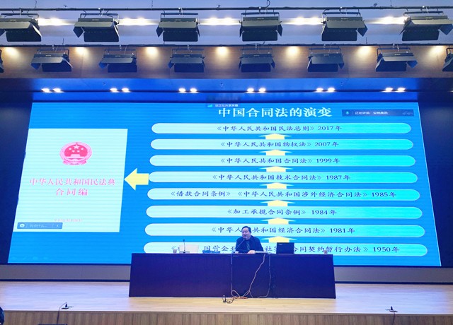 安徽大學(xué)法學(xué)院副教授於恒強圍繞合同法律風(fēng)險做了講解,對《民法典》合同編中主要合同類型進行介紹,闡釋了在合同訂立過程中存在的風(fēng)險,并濃縮了二十條防風(fēng)險要點,以通俗易懂的語言為廣大員工提供工作指引。