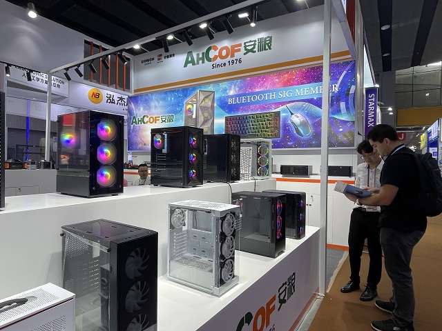 南方一部在本屆廣交會一期主要參展游戲電腦機(jī)箱產(chǎn)品,從入門級到高端游戲機(jī)箱齊全。部門在營銷展示上采用一系列新穎的形式,展臺的主通道采用目前比較流行的魚缸游戲機(jī)箱作為看點(diǎn),用可藍(lán)牙連接手機(jī)和電腦的高端游戲機(jī)箱吸引客戶。為了突出參展效果,所有游戲機(jī)箱都裝上了RGB變色風(fēng)扇。多樣化的變色風(fēng)扇與南方二部的機(jī)械鍵盤吸引了大量客戶駐足觀看。消費(fèi)電子展6個攤位,突出游戲類產(chǎn)品的裝修風(fēng)格,搭配大氣的門頭、顯眼的海報燈箱,使客戶在進(jìn)館時只需一眼就能夠鎖定目光。