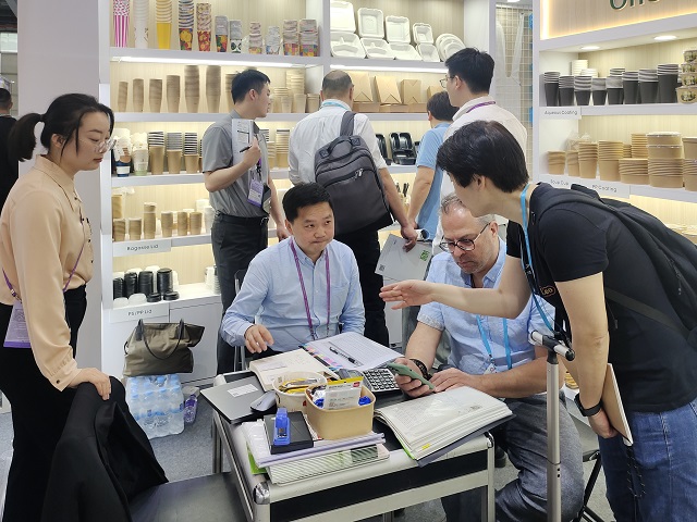 安糧家居展位由安糧國(guó)際日用品事業(yè)部攜數(shù)百款單品展出,產(chǎn)品幾乎覆蓋一次性餐廚全套系列。本次展會(huì)重點(diǎn)推出了全新的PHA高端系列以及壽司盒、紙盤(pán)、甘蔗漿吸管、超細(xì)纖維抹布等新品,在館內(nèi)格外醒目、深受青睞。此外,部門(mén)順應(yīng)綠色環(huán)保趨勢(shì),推出了一系列最新環(huán)保產(chǎn)品,吸引了不少具有環(huán)保意識(shí)的客戶(hù)群體關(guān)注。攤位模擬國(guó)外超市擺放,仿造小型超市。擺放的產(chǎn)品統(tǒng)一設(shè)計(jì)包裝,著眼聚焦“產(chǎn)品系列化+全流程服務(wù)”,為全球采購(gòu)商提供便利的“一站式采購(gòu)服務(wù)”,獲得新老客戶(hù)的一致認(rèn)可與好評(píng)。