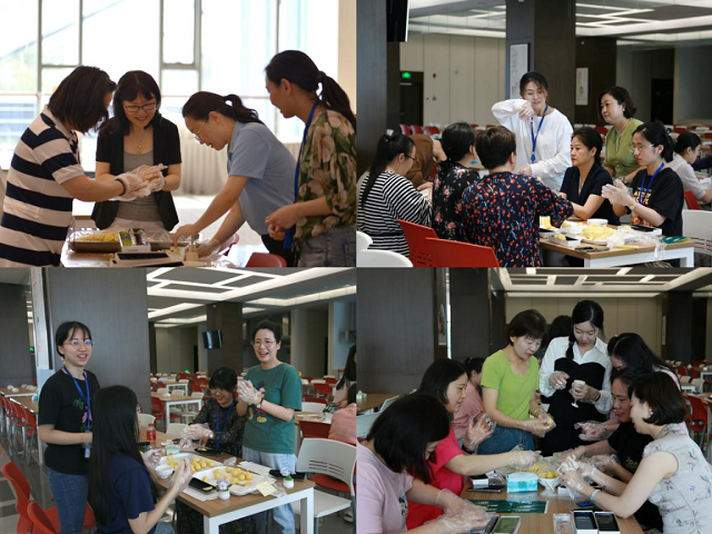 接著進入了大家最躍躍欲試的環(huán)節(jié)——DIY綠豆糕。同事們圍坐一堂,有的揉面,有的裝模,有的擺盤,有的包裝,大家一邊認真制作,一邊相互交流。在大家精心制作下,一個個、一盒盒香甜美味、花色各異的綠豆糕呈現(xiàn)在眼前?;顒蝇F(xiàn)場其樂融融,洋溢著和諧、平安與幸福的氛圍,大家一起感受親手制作綠豆糕帶來的歡樂。