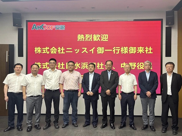 7月1日,海螺集團副總經(jīng)理王建超、安徽國貿(mào)董事長何傳友、常務(wù)副總經(jīng)理陶軍、安糧集團董事長吳國杰、總裁楊曉剛熱情接待了日水浜田社長一行,并在安糧中心32樓召開座談會。會上,王建超首先對日水社長一行的來訪表示歡迎。王建超表示日水是安糧的重要客戶,為安糧對日貿(mào)易的發(fā)展做出了積極貢獻,希望能繼續(xù)強化合作,充分發(fā)揮日水種植、養(yǎng)殖和產(chǎn)品研發(fā)技術(shù)優(yōu)勢,立足國內(nèi)市場,加工適銷對路的產(chǎn)品,國內(nèi)國際兩個市場一起抓。同時希望能夠借鑒日水預(yù)制食品行業(yè)的先進經(jīng)驗,重點拓展國內(nèi)預(yù)制菜市場。浜田社長表示日水和安糧的合作已有38年歷史,安糧也是日水進軍中國市場后合作的第一批企業(yè),日水對海螺集團、安徽國貿(mào)的企業(yè)實力和行業(yè)影響力十分贊賞,對安糧產(chǎn)品的品質(zhì)十分信任。浜田社長重點指出安糧新產(chǎn)品——調(diào)理南瓜產(chǎn)品在日本市場十分暢銷,希望日水研發(fā)團隊和安糧工廠共同開發(fā)更多的調(diào)理蔬菜產(chǎn)品。