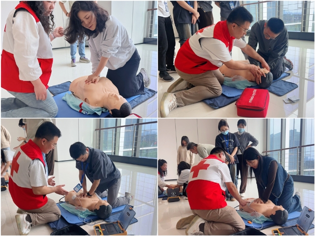 活動緊扣“學技能、強擔當、踐初心”目標,精心設(shè)置標準化急救技能培訓(xùn)課程。在安徽省紅十字會專業(yè)講師的指導(dǎo)下,黨員同志們學習了心肺復(fù)蘇(CPR)、自動體外除顫儀(AED)操作、創(chuàng)傷止血包扎、氣道異物梗阻處理等核心急救技術(shù)。針對心梗、腦卒中早期識別及燒燙傷應(yīng)急處置等日常生活中常見的突發(fā)場景,講師也進行了專項教學。課程采用理論講解與實操演示相結(jié)合的模式,借助模擬人體設(shè)備逐項分解急救動作要領(lǐng),確保參訓(xùn)黨員能夠掌握規(guī)范、科學的急救流程。