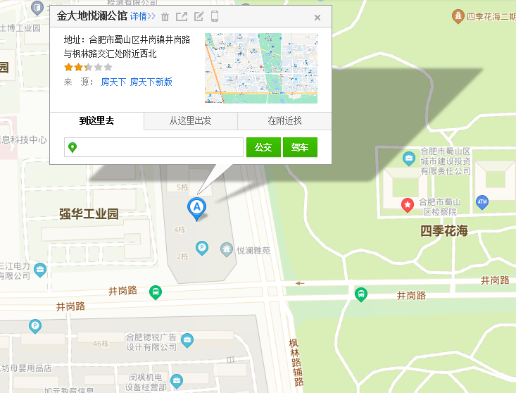 項(xiàng)目位于合肥市蜀山區(qū)楓林路與井崗路交口西北角,出行十分便利,生活配套成熟。周邊公共設(shè)施優(yōu)越,3公里內(nèi)有9個(gè)公園,如大蜀山國(guó)家森林公園、四季花海、合肥西擴(kuò)公園、蜀麓公園等。項(xiàng)目附近醫(yī)療資源較為豐富,3公里范圍內(nèi)有5個(gè)一級(jí)醫(yī)院,其中安徽醫(yī)科大學(xué)第一附屬醫(yī)院(高新院區(qū))距離樓盤(pán)直線(xiàn)僅兩公里。